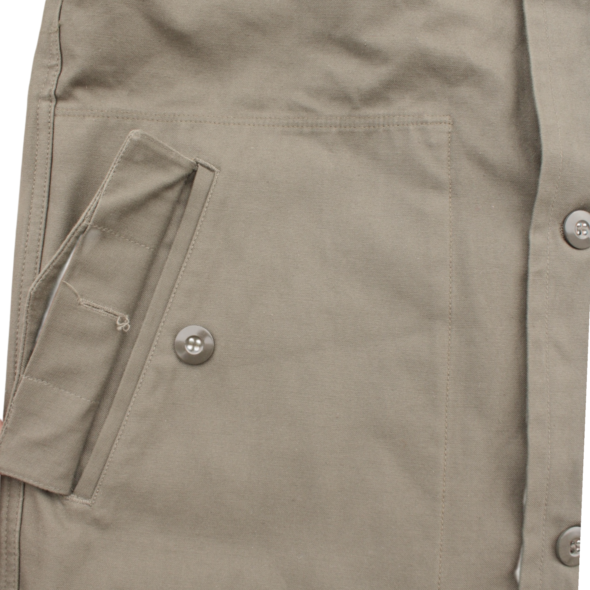 - Front button closure with storm flap.